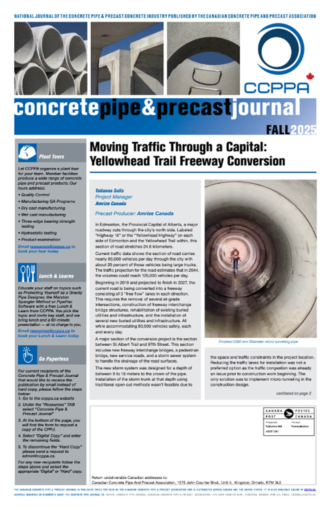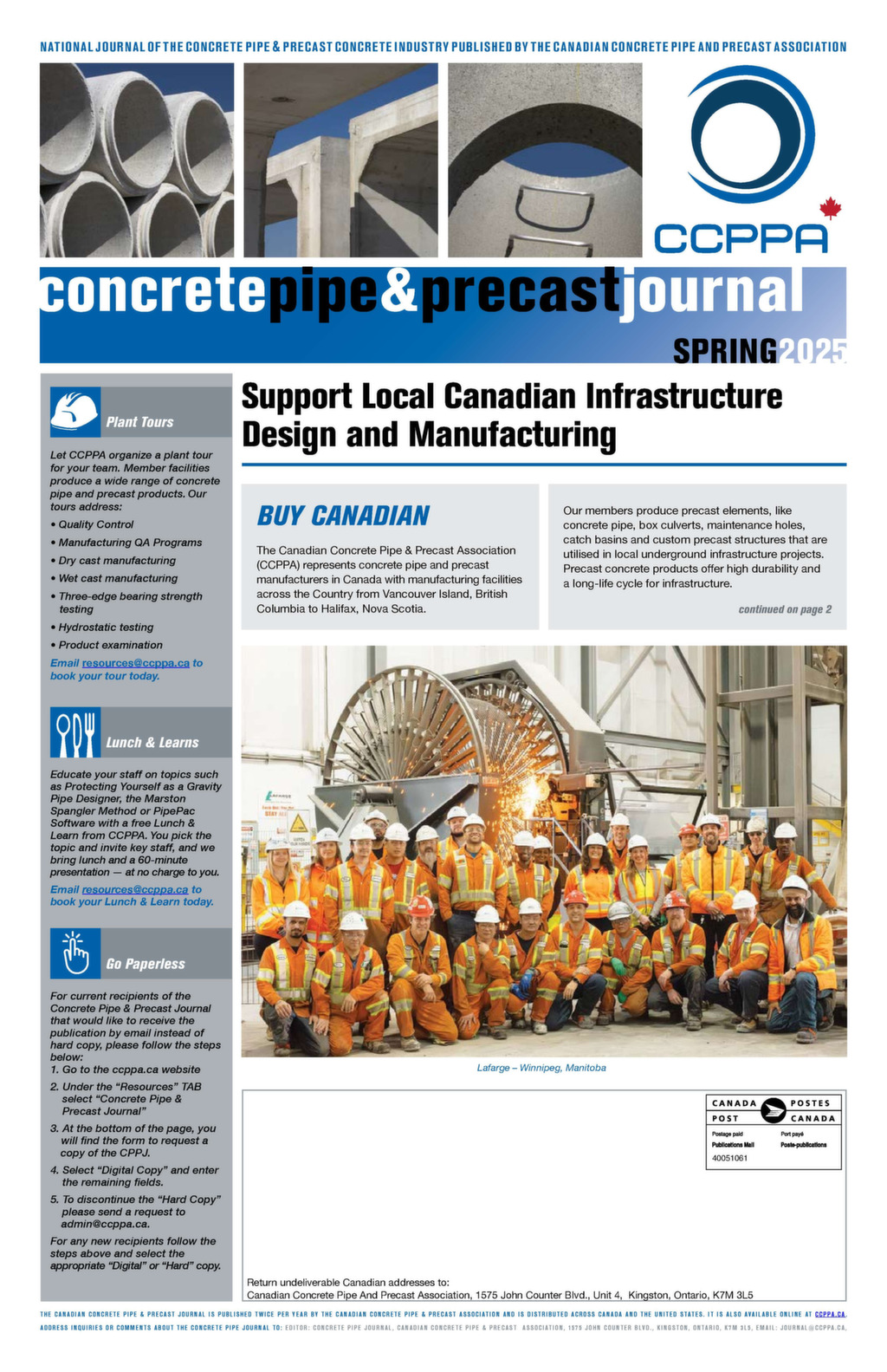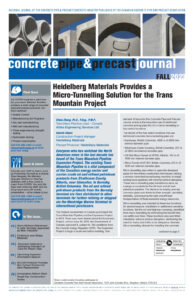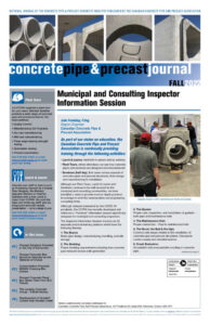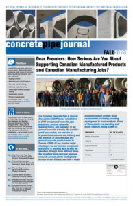 The Concrete Pipe & Precast Journal is the flagship publication of the Canadian Concrete Pipe & Precast Association. Published 2 to 3 times each year, the publication is your all-in-one resource for everything concrete:
